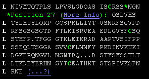 <Insertions at ...SSQSLVHSNGN... (27, 27A, 27B, ...) <Numbering gap: ...FP-TF... (P95 peptide bonded to T97) <Physical gap: residues without coordinates "dsk" |