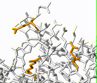 | Auto zoom-in and labeling by FirstGlance of the isopeptide bond in 2xi9 (Tools tab, Protein Crosslinks), followed by manual slabbing, rotation with the mouse, and further zooming. (MP4 file.) |