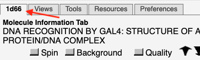 Molecule Information Tab: This tab is labeled with the PDB code unless the model is not an entry in the Protein Data Bank, or has been modified.